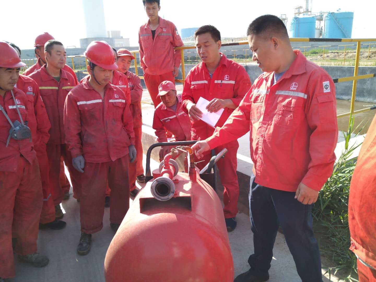 在安全生產(chǎn)月來臨之際,為進(jìn)一步增強(qiáng)員工消防意識,提高員工對公司內(nèi)火災(zāi)的應(yīng)急撲救處置能力,山東得順源石油科技有限公司沾化分公司按2020年應(yīng)急演練計劃于5月20日上午08:00在1#倉庫與公司南側(cè)空曠地舉行了一場消防實戰(zhàn)演練,歷時2小時并圓滿完成。分公司領(lǐng)導(dǎo)及全體員工參加了本次演練活動,演練前由各部門負(fù)責(zé)人及安全員講解了有關(guān)火災(zāi)現(xiàn)場的應(yīng)急處置方案,滅火器、空氣呼吸器、消防栓、消防水帶的工作原理、使用方法及使用注意事項等。