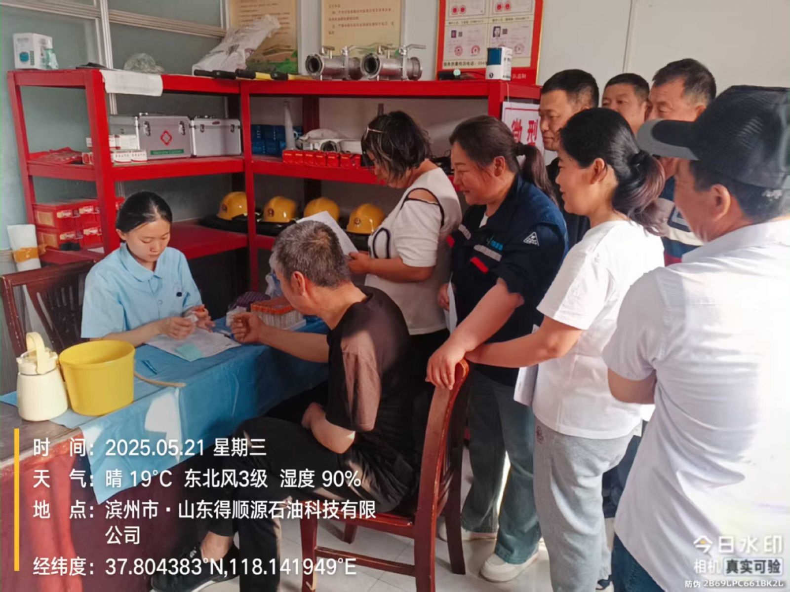 2025年5月21日上午,在“5.21”這個充滿愛意的特殊日子,沾化分公司與濱州市利世職業(yè)健康體檢中心合作,組織全體員工在廠區(qū)內(nèi)進行了職業(yè)健康體檢活動,為員工們撐起健康“保護傘”;本次檢查項目有血常規(guī)、尿常規(guī)、內(nèi)外科、彩超、心電圖、肺功、肝功、腎功、胸透等。本次健康體檢旨在關(guān)注職工身體健康,營造良好工作環(huán)境,減少及預(yù)防疾病的發(fā)生,完善所有員工福利保障。